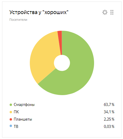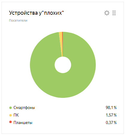 Ниже на диаграммах видно,что “плохие” заходят в 98% случаев со смартфона, а у “хороших” более разнообразный спектр.