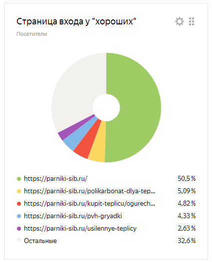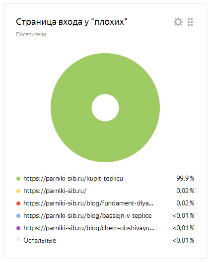 Здесь ещё интереснее - “плохой” трафик идет исключительно на страницу “Купить теплицу”, в то время как у “хороших” основная страница входа - “Главная”.